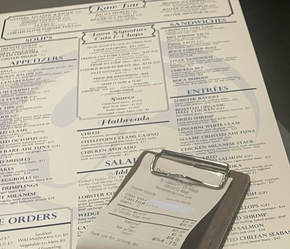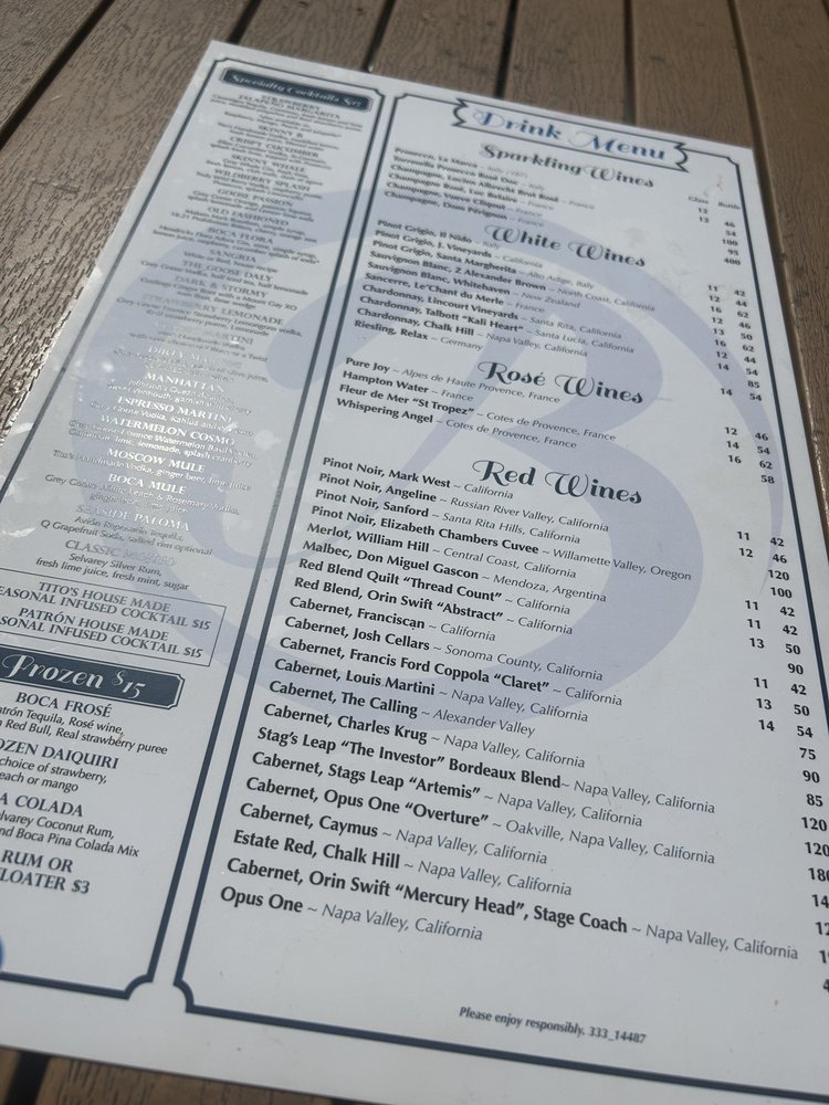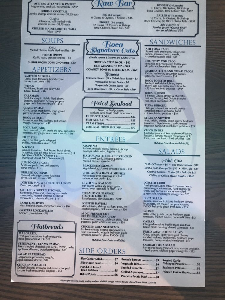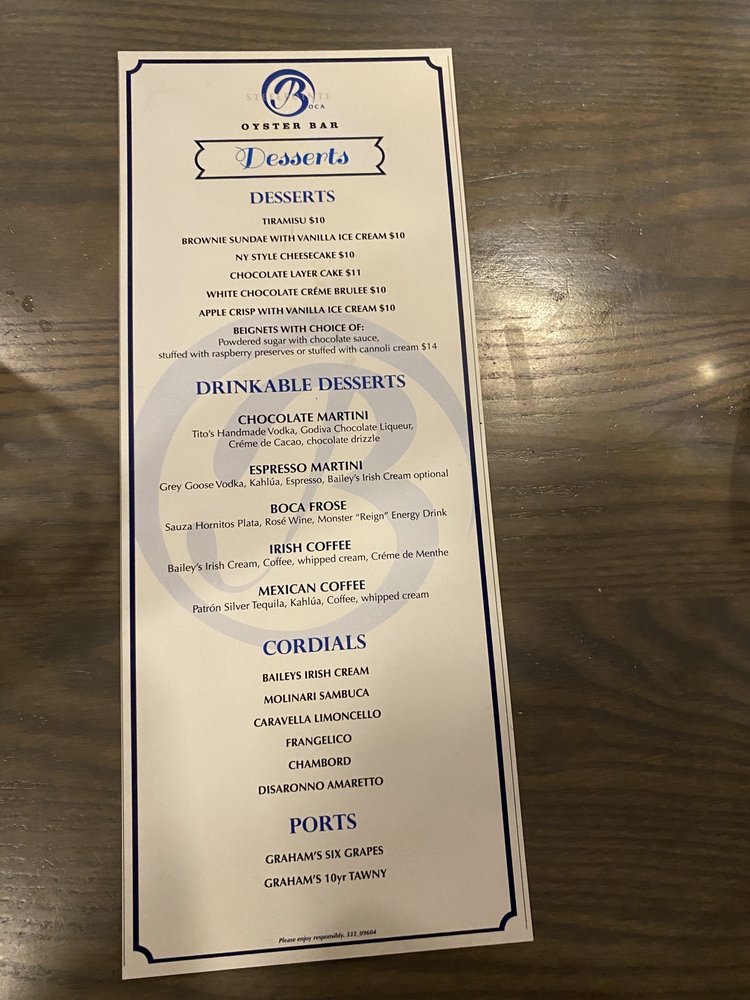 Boca Oyster Bar Menu (2025 Update)